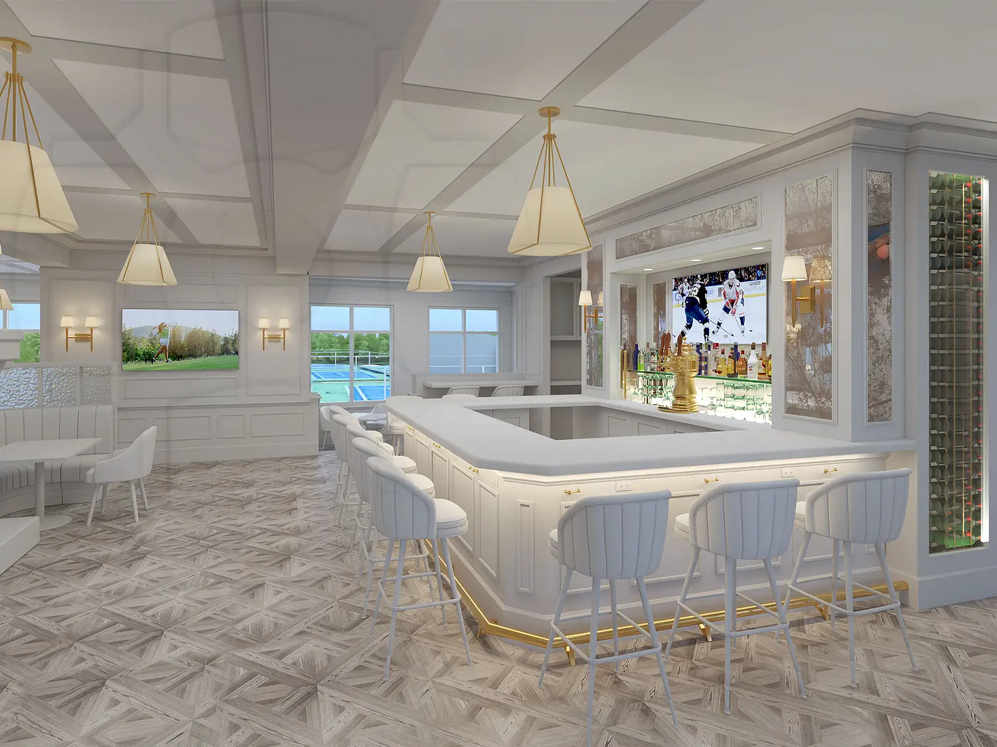 Pre-material whitebox render for my client's country club bar and lounge presentation.